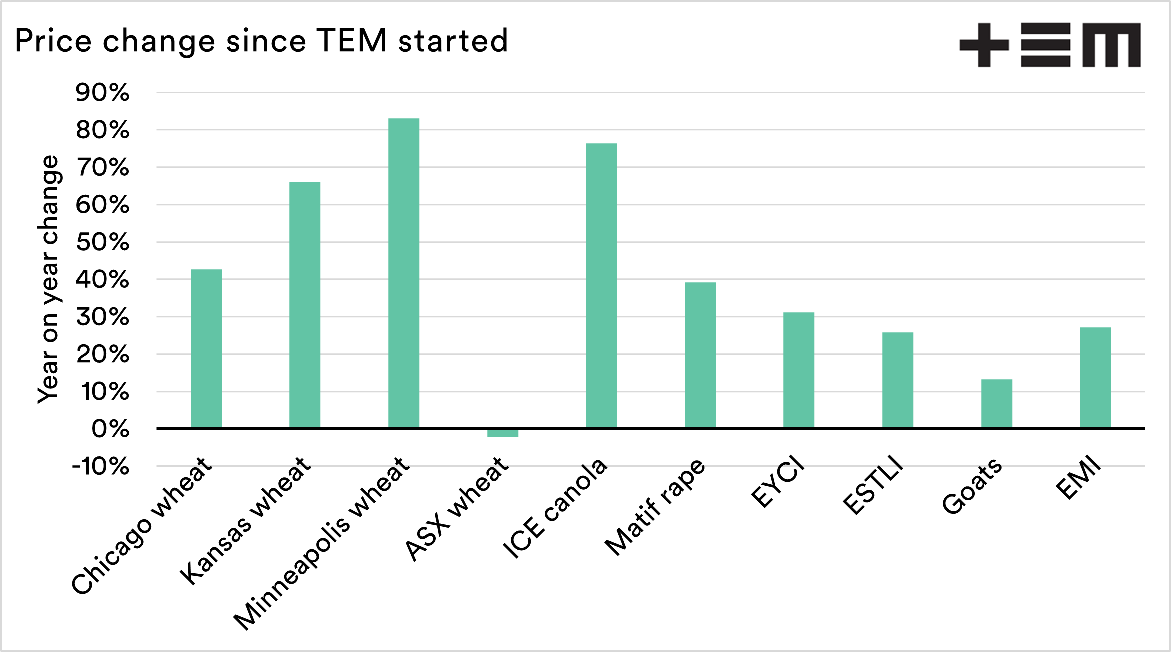 It’s amazing to see the rise in commodity pricing at a local and global level, which at a time of increased productivity is providing a positive way forward to increase farm resilience. The only exception being ASX wheat which is trading lower than this time last year, but that was a time when pricing was still driven by the drought.
