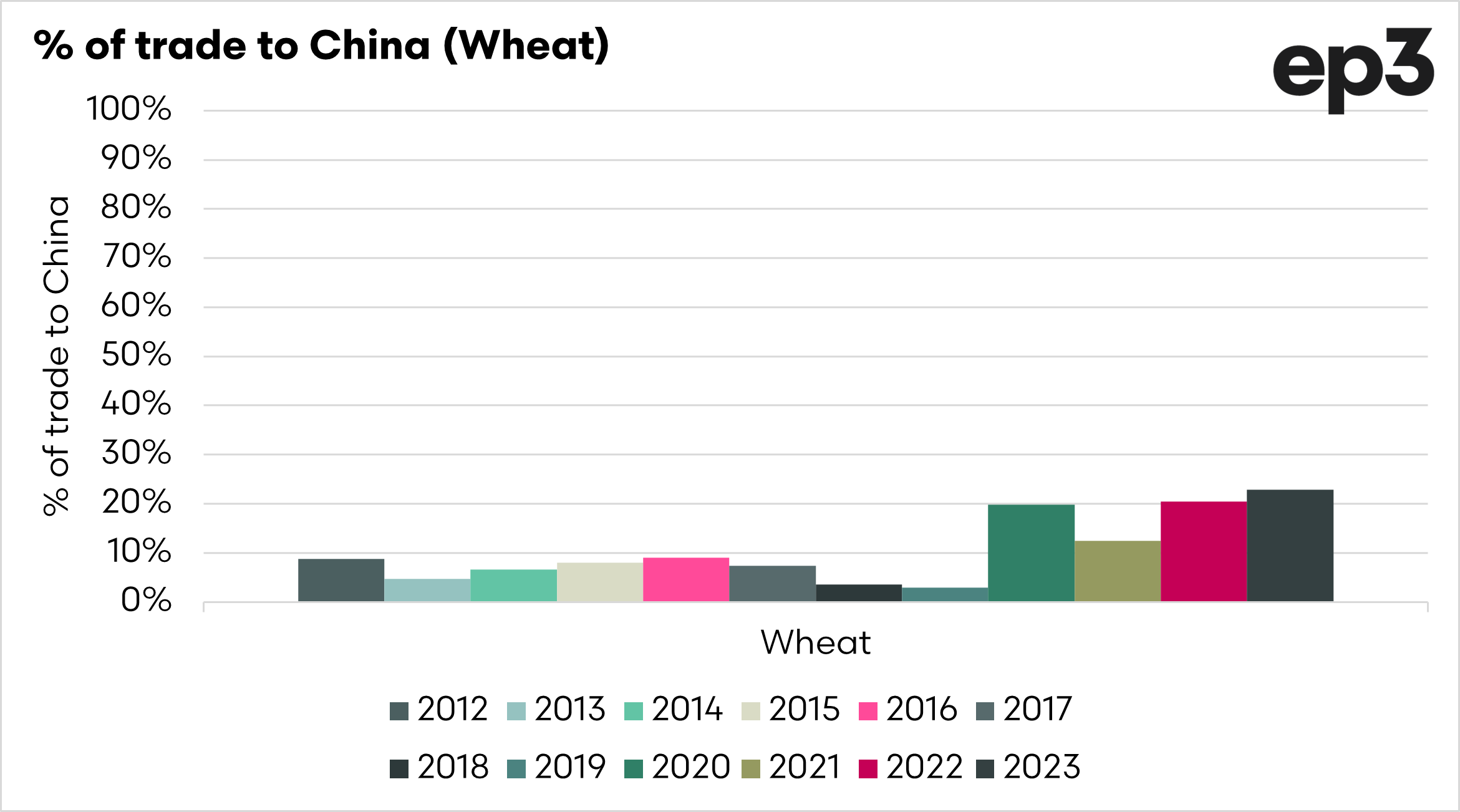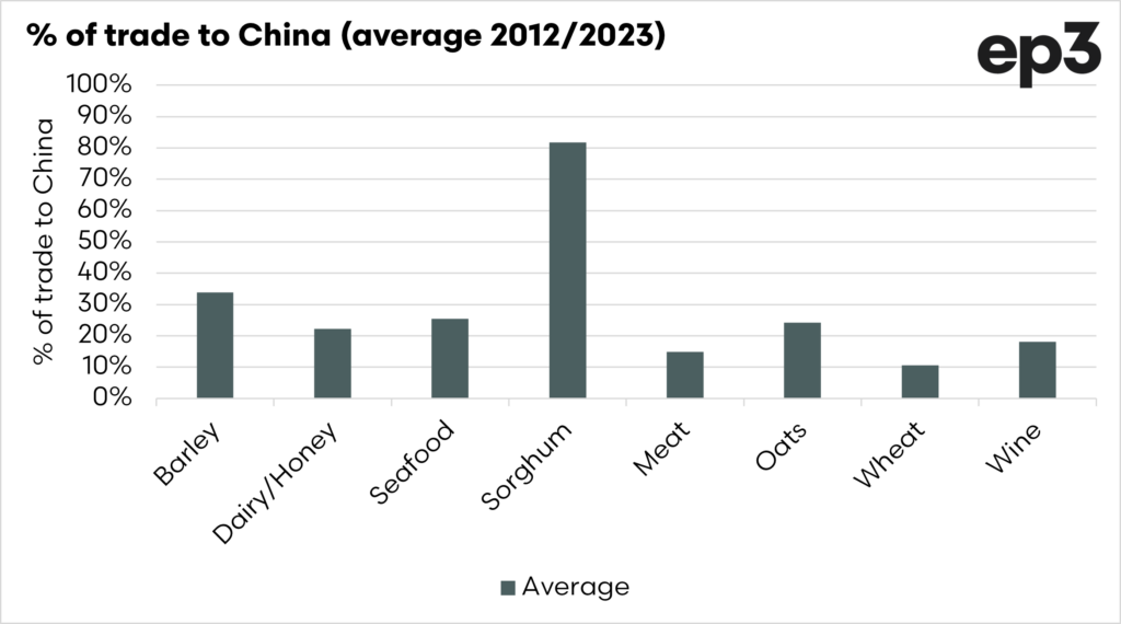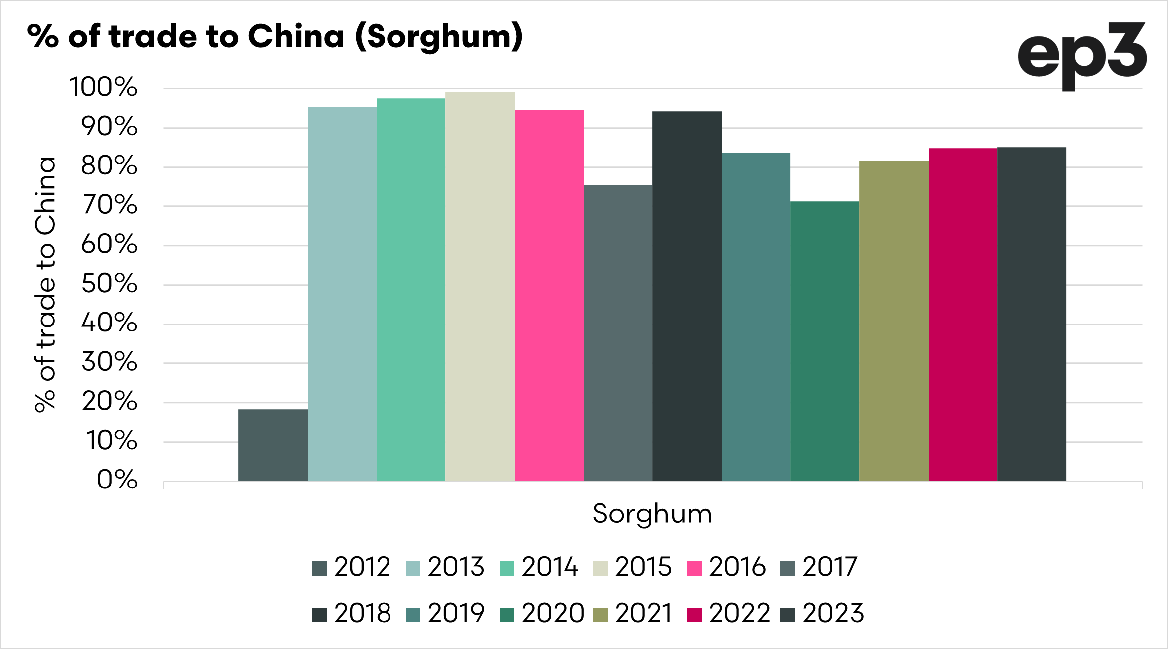 We are heavily reliant on China as a destination for our sorghum, and it has been like that since 2013. At its zenith, 99% of our exports of sorghum were destined for China. If China has a hiccup and reduces demand, or they decide to play funny with Australia, they could cause a lot of havoc to our farmers.