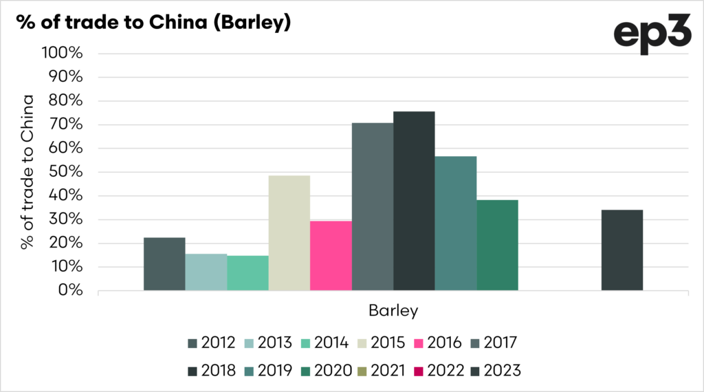 - In the past year, Australia has shipped three quarters of our barley to China.