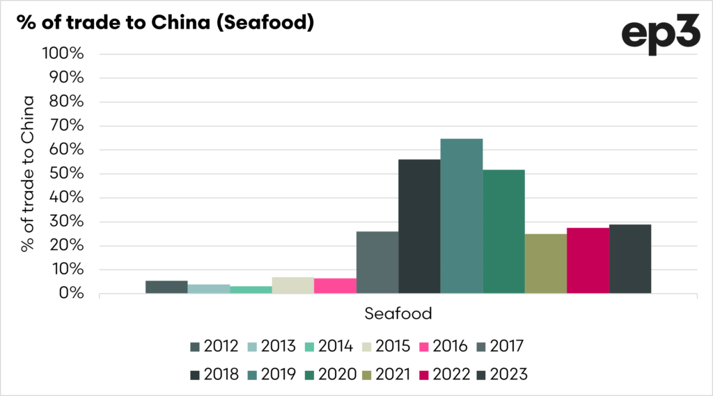 - We effectively lost trade access into China for a few of our commodities (wine, seafood and barley), and there was an attempt to diversify.