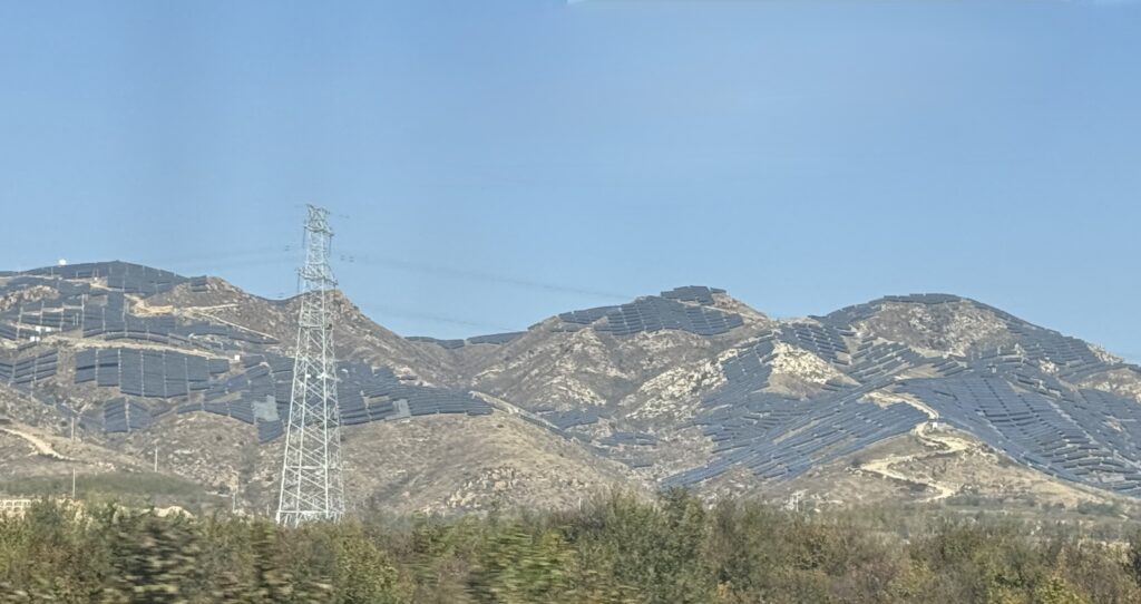 I took this photo of solar farms from a bullet train north of Beijing, I expect from a visual perspective this would have a lot of pushback in Aus/NZ. Their power cost averages US7.5c/kWh compared to our US20c/kWh.