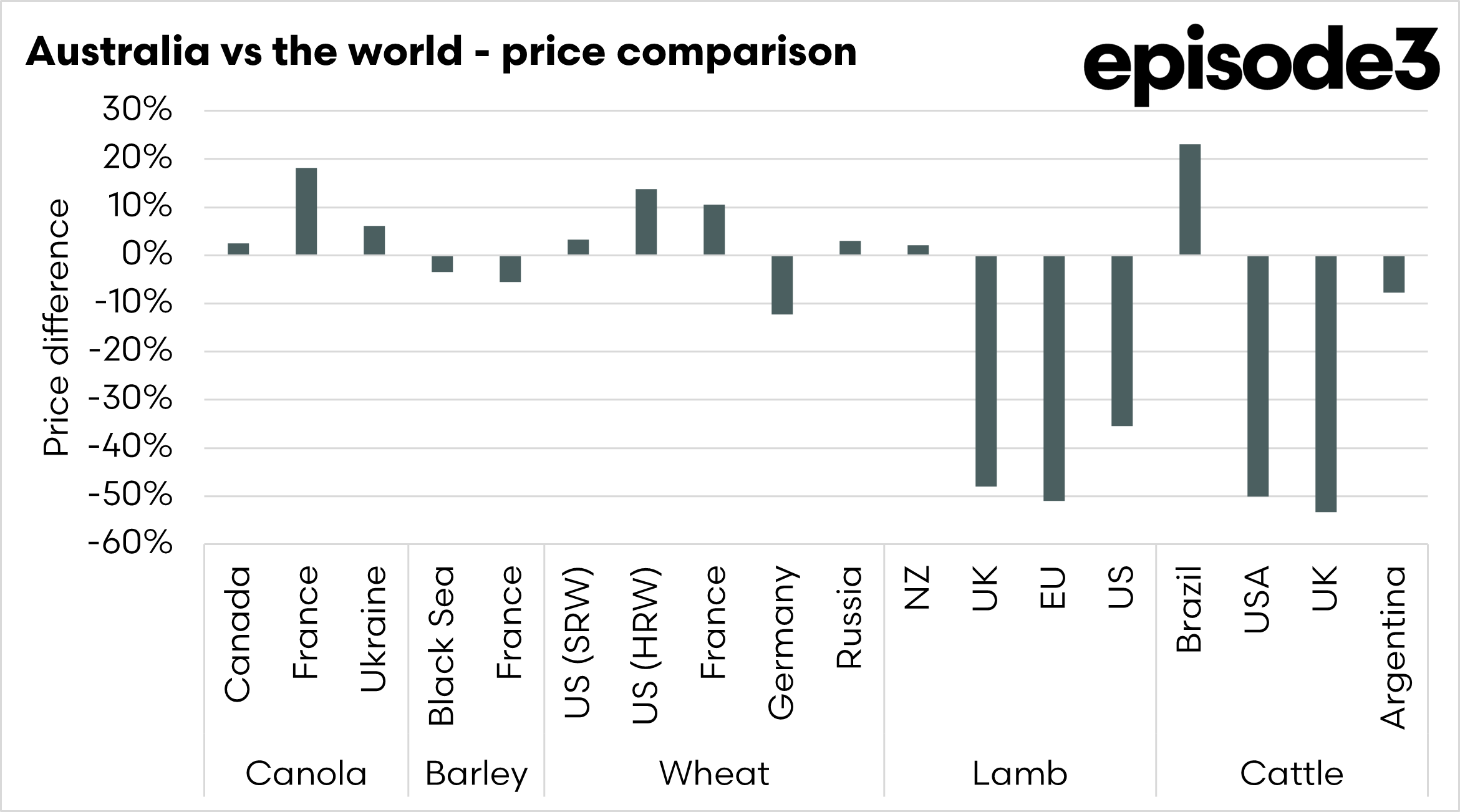 Analysing the comparison of agricultural commodity pricing between countries that Australia supplies and those it competes with is vital for understanding market dynamics, competitiveness, and trade opportunities.