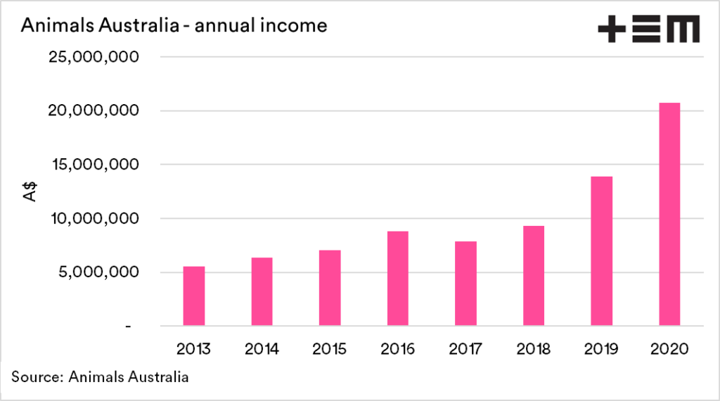 - The marketing and campaign material used by Animals Australia has seen them increase their income throughout the last decade.