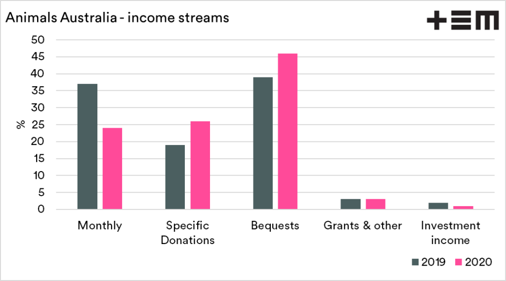 The other point which is interesting in the annual report is the breakdown of income streams. The bulk of their income comes from bequests in wills and monthly donations (memberships). Whilst overall income was up, the monthly donations were reduced, with the bequests and one-off payments making a much larger share of income.