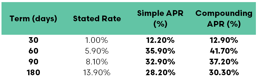 One provider charges 5.9% for 60 days or 8.1% for 90 days. These figures appear attractive, but once converted into annual terms, the picture is very different. A 90-day fee of 8.1% equates to over 30% interest. A 13.9% six-month fee is close to 30% annually. In contrast, most farm overdrafts fall between 6 and 11%. Without APR disclosure, farmers end up comparing a short-term fee to a full-year rate, making it easy to underestimate the actual cost.