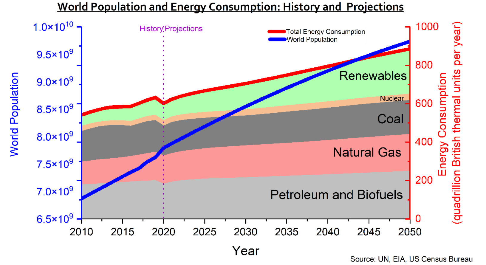 The reality is as the graph shows below: the world population and a growing middle class means the demand continues to rise at a faster rate than renewable potential grows. Clearly wind and solar are a step in the right direction but net zero is a fantasy.