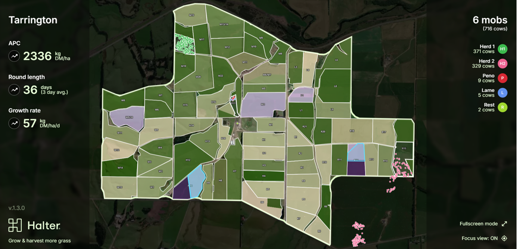 Now in our third season with Halter virtual fencing, we are using the real time data and trends to optimise both cow feeding, pregnancy rates and grass growth.