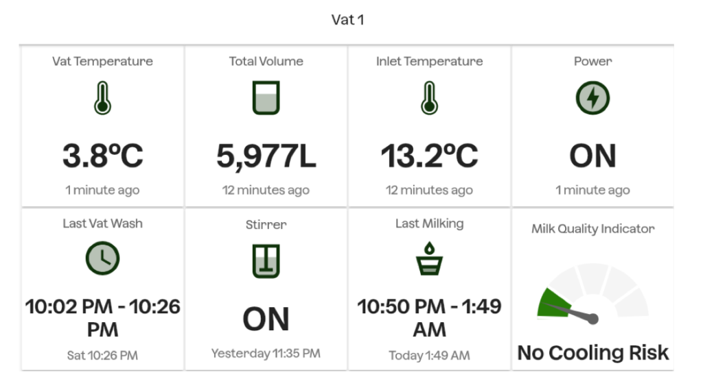 Another App linked to Fonterra constantly checks the Milk Vat temperature and volume, alerting us if it doesn’t cool quick enough or there is a fault.