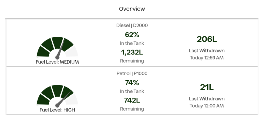 The same App also monitors our fuel tanks, alerting us to possible theft or running out!
