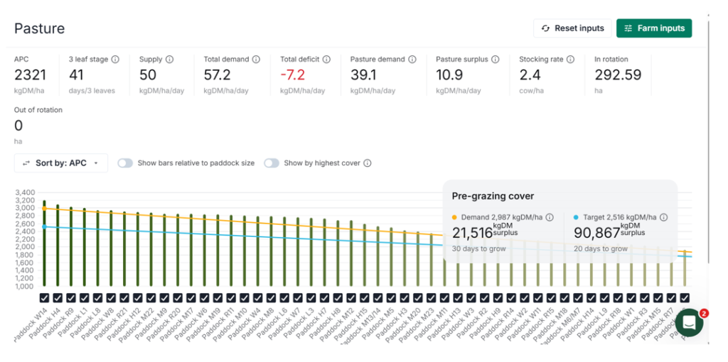 The pasture growth curve below uses satellite imaging data. In our first year with Halter it was a bit erratic in its reading, now with many more farms using the technology and improved algorithm analysis, it is pretty accurate although still needs a trained mangers eye to check covers otherwise cows can be under fed.