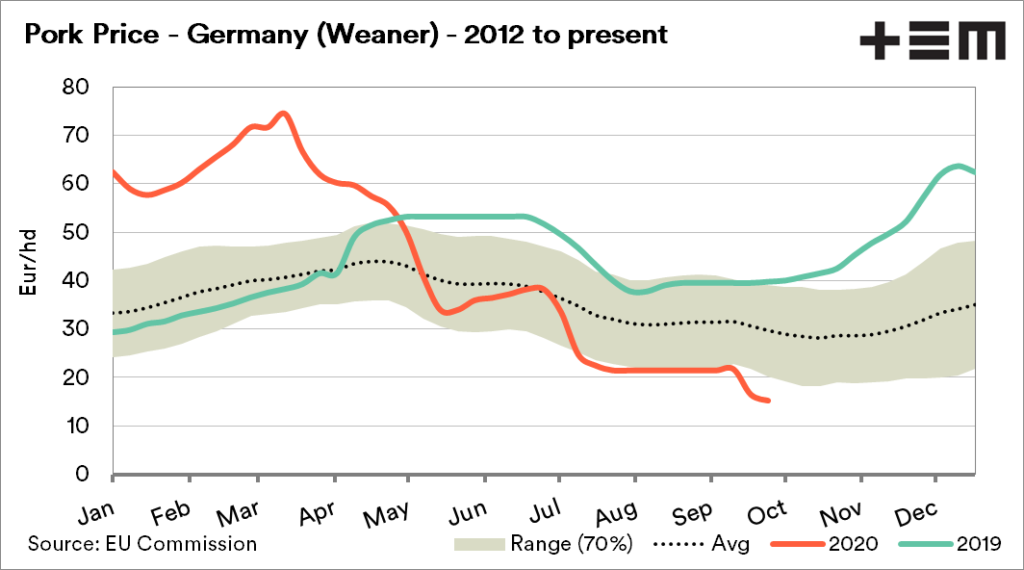 The fear of disruptions to Chinese food supplies has resulted in German pork being banned in China. The European pork industry was already in strife due to reduced foodservice demand impacting on pork consumption.