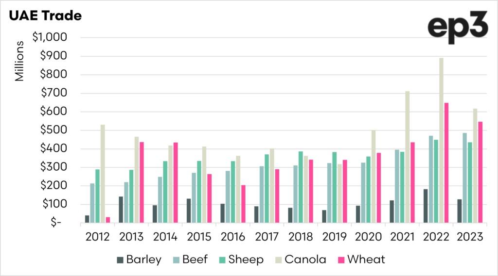 My distinguished colleague Matt has written an article on the boost the UAE could provide to Australian agriculture through a free trade agreement (see here). In this article, he focused on the existing trade between Australia and the UAE.