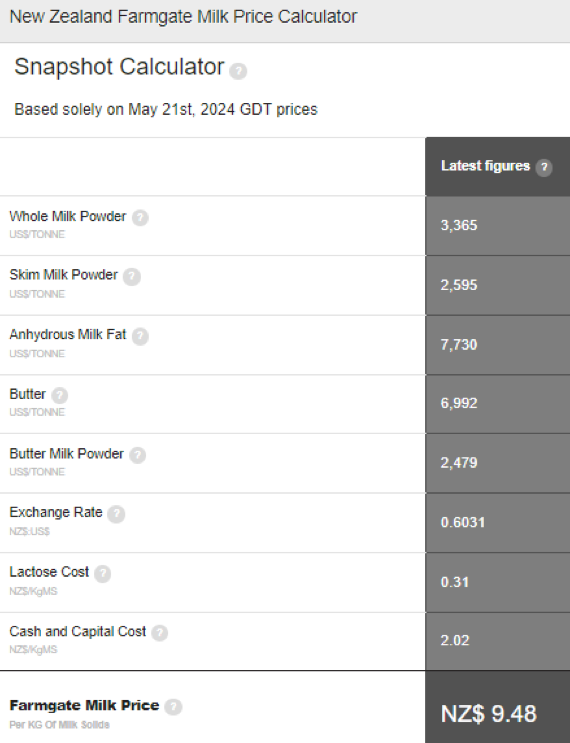GDT has done a nice little kangaroo hop and as shown in the NZX spot price milk calculator based off the last GDT the NZ spot price is $9.48. This gives the most transparent reflection of current international pricing, although WMP and butter may be inflated with low seasonal supply.