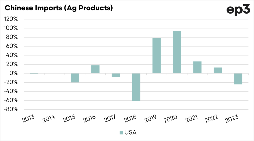 This included a 25% tariff on soybeans, which are the largest agricultural export from the US to China.