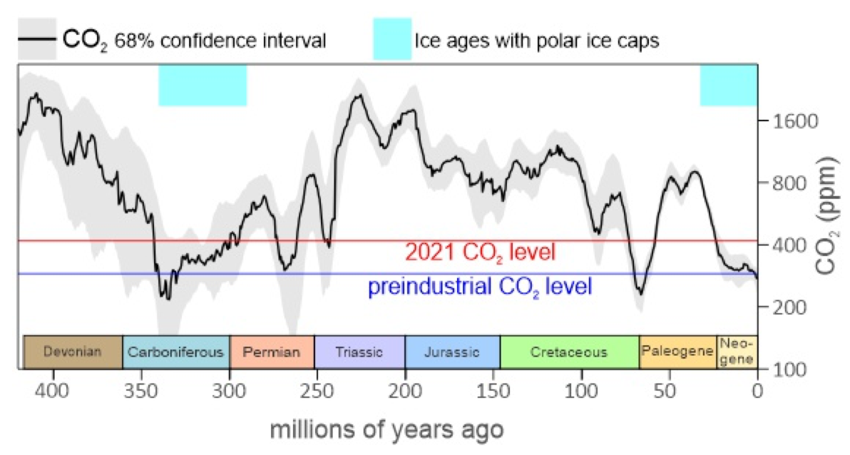 Keep in mind the CO2 levels and associated temperature have been a lot higher than now.