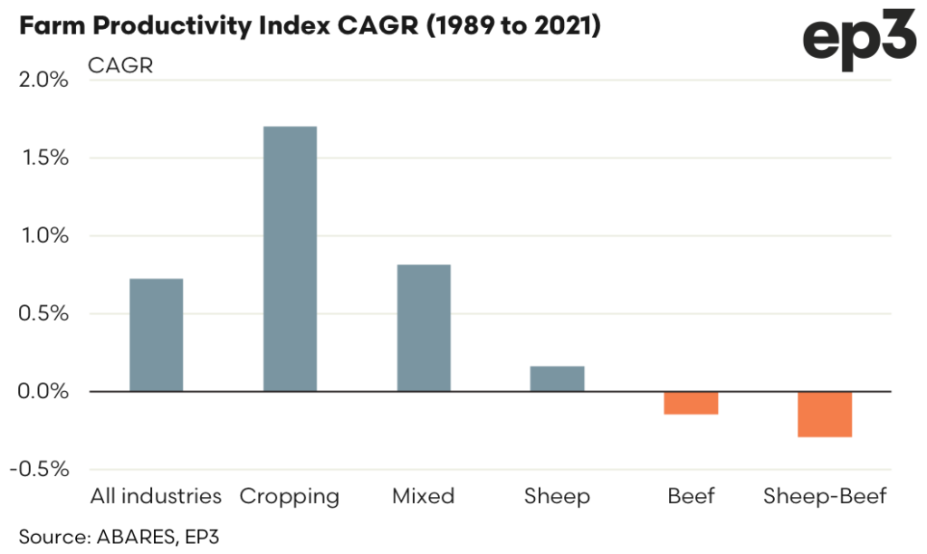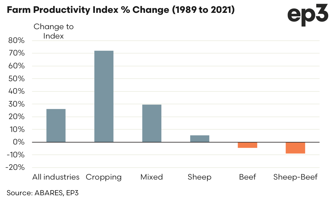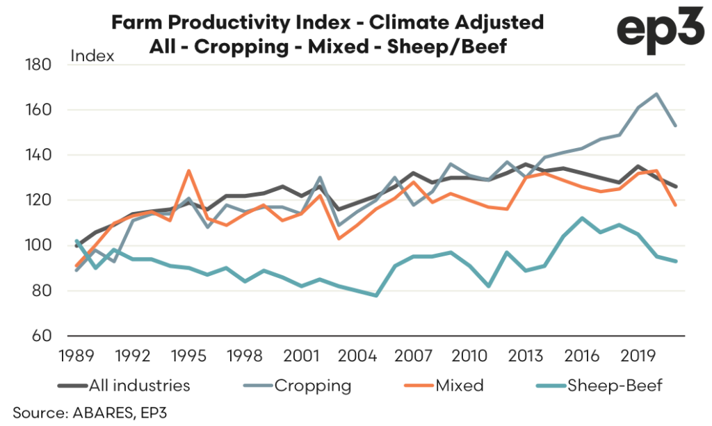 - Cropping enterprises have seen relatively steady growth rates in productivity of around 1.7% per year.