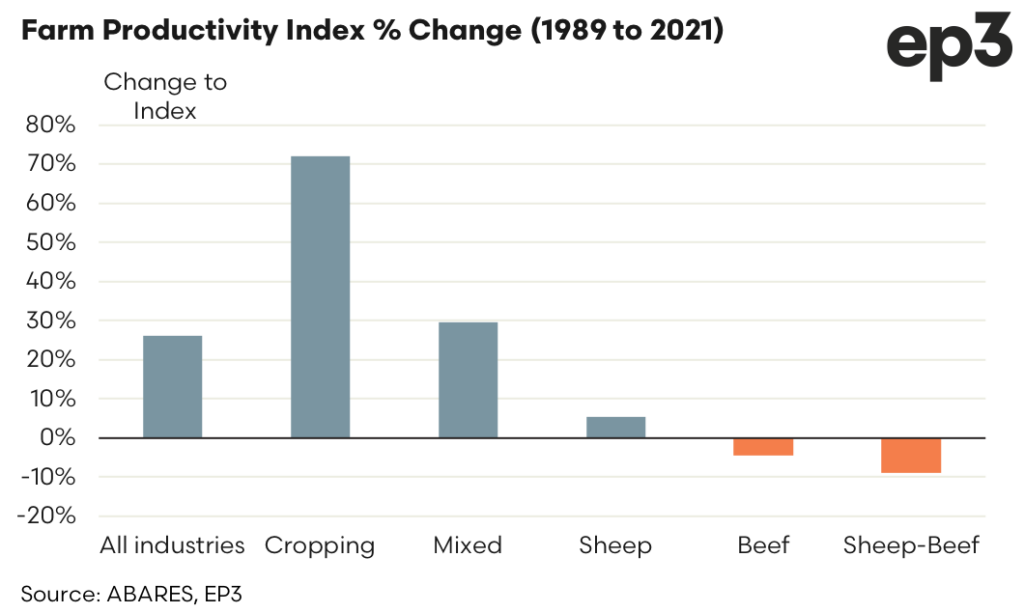 - Meanwhile combined sheep-beef operations have fared the worst, scoring a productivity decline of 0.3% over the last three decades.