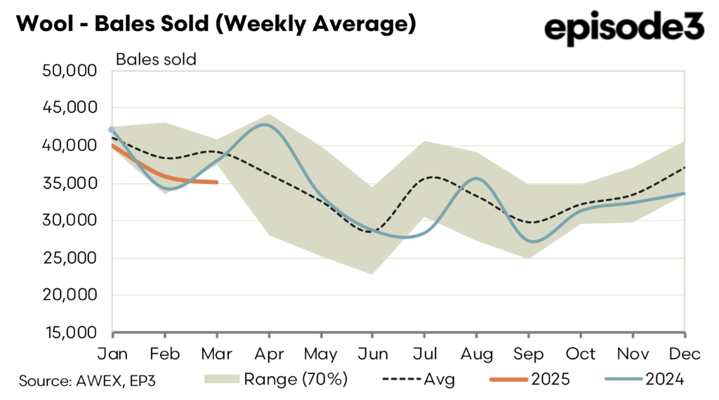 The impetus has been similar on the forward markets, but volumes remain disappointingly low. Trades have centred around the spring and early summer with and accent on the medium microns which are currently sitting at an historically high level in the spot of 1508. Growers have taken advantage and hedged at 1500 for November 2025, a level not seen since March 2020. Tight supply of medium wools rather than increased demand has seen the basis (difference in price) between the key indices 19 and 21 contact to below average levels. Buyers reaction to this has been to bid the forward market a little more aggressively on the fine wools. Currently the bids are 20 cents over spot on the 19.0 contract (1575) and flat to spot on the 21.0 (1500).