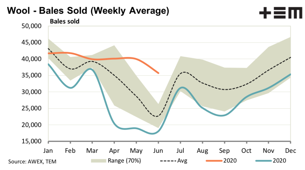 The 21 MPG did pull back this week, as the buy side of the market considered the big increases in offerings and production (AWTA volumes). In US dollar terms the 21 MPG is close to the low side of its trading range for 2021 so there might be a little more downside before support is found.