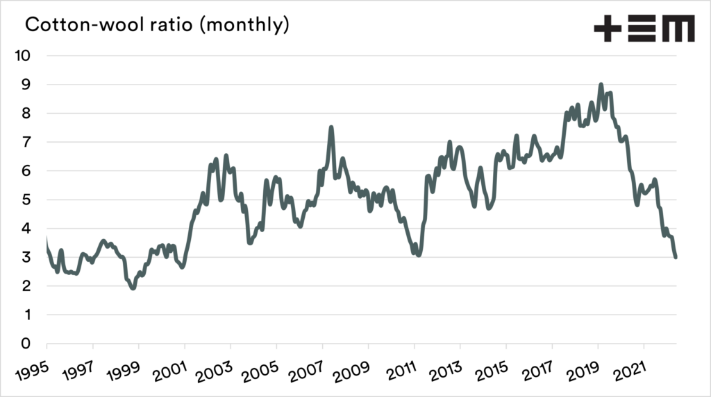 The advance in cotton and the relatively sedate EMI have seen the cotton ratio reach the lowest level in over 20 years.