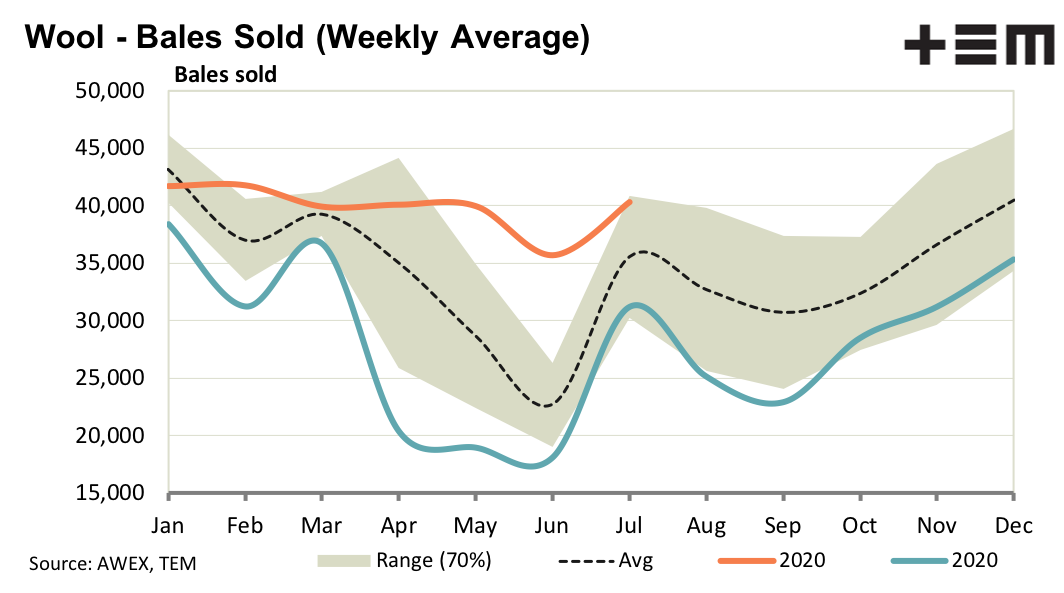 At the other end of the micron scale (for the Australian clip) forward bids for 28 micron are pitched around auction levels (which was up 49 cents or 10% this week) out to Christmas, reflecting that crossbred prices compared to broader merinos have been very low. How prices fare in the upcoming spring will depend in large part how well the European parts of the supply chain recover from the effects of the pandemic.