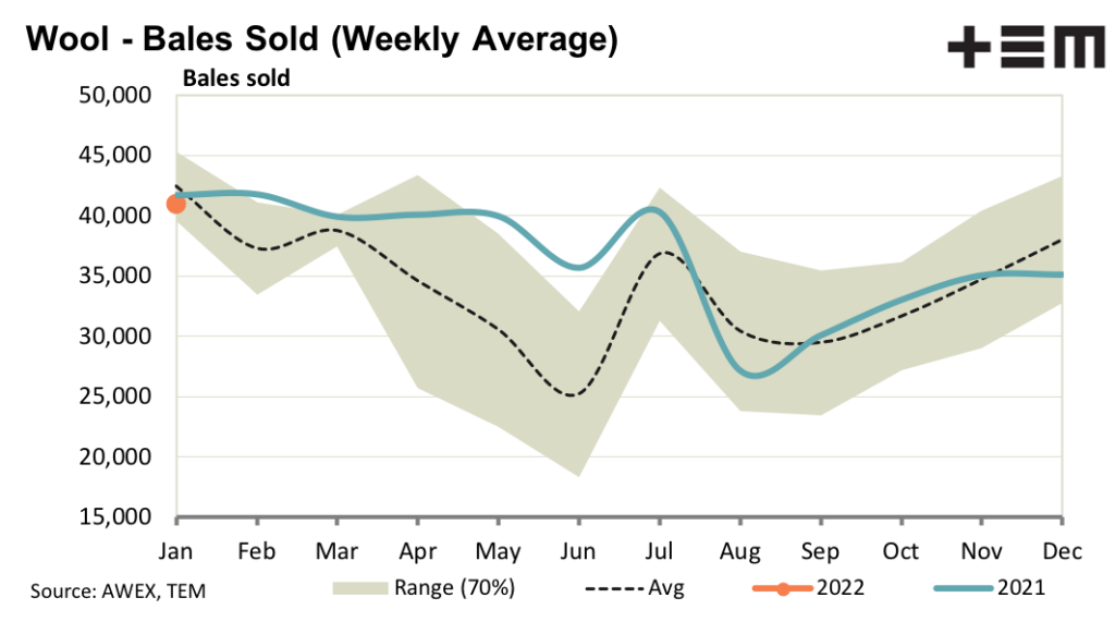 After a strong start last week, merino prices steadied this week with demand tipped towards the better style wool as buying continues to reflect improved European processor demand. Chinese demand is less certain at present as the run up to the Chinese New Year and the Winter Olympics throws up the risk of lockdowns due to omicron. Reports indicate that travel for the Chinese New Year is starting earlier (to avoid potential lockdown issues) and this is slowing the flow of information and wool through the supply chain.
