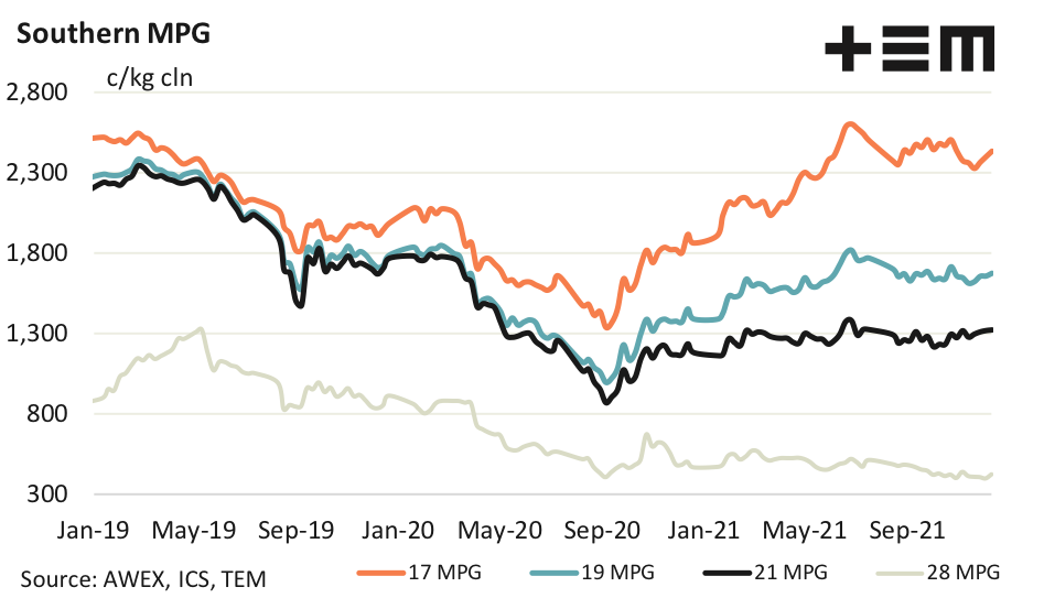 The merino clip in the eastern regions continues to fine up, in contrast to Western Australia where it continues to broaden. These supply trends will drive change in the price structure of the greasy wool market in 2022.