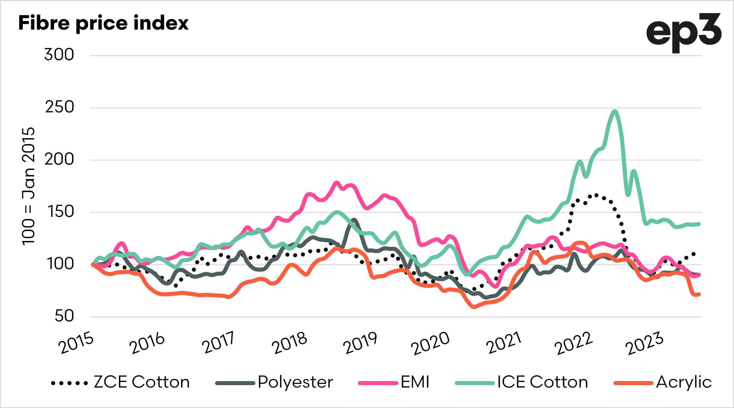 The same can be said of fibres. No fibre is an island; they are part of the whole. On a regular basis, we compare the fibres, as it provides a quick outlook on the market structure across the major fibre types.