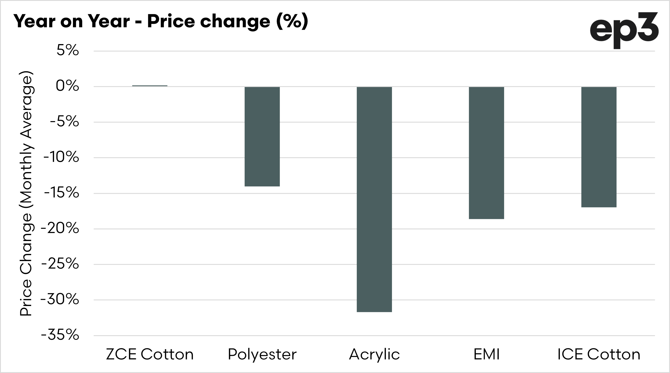 The charts below show the index of fibre prices, and the second chart shows the change year on year.