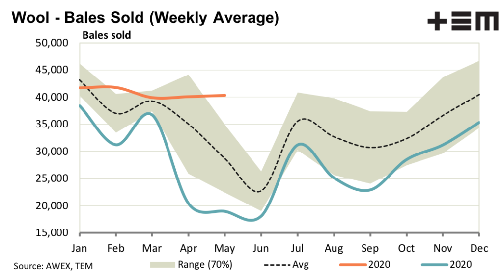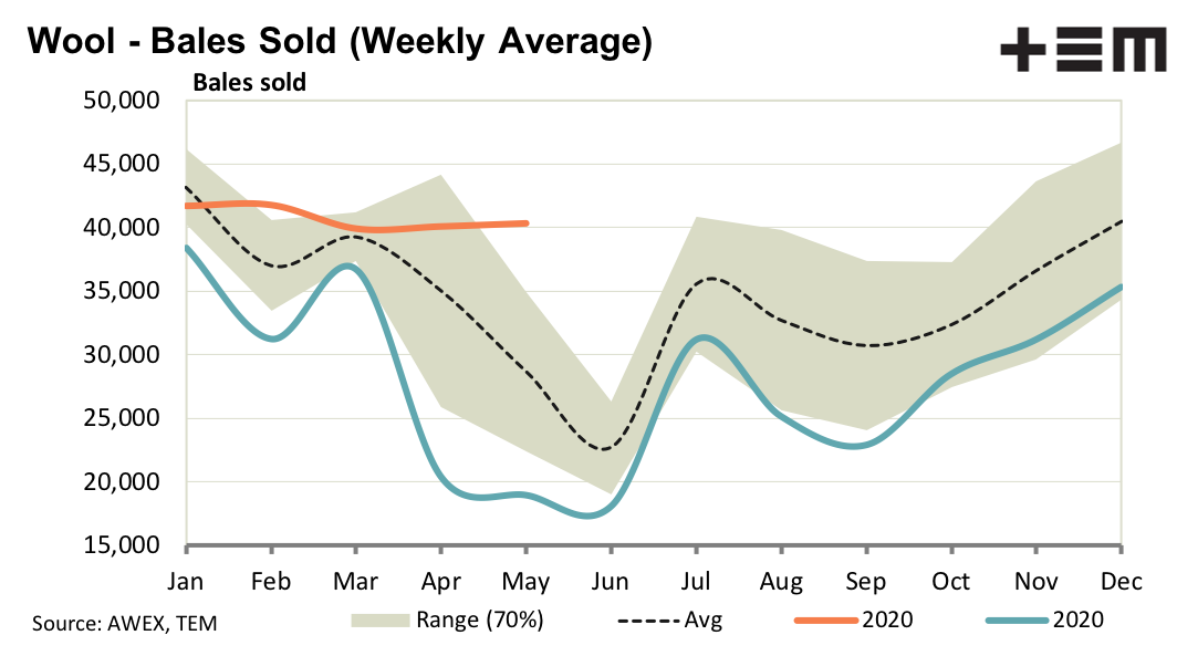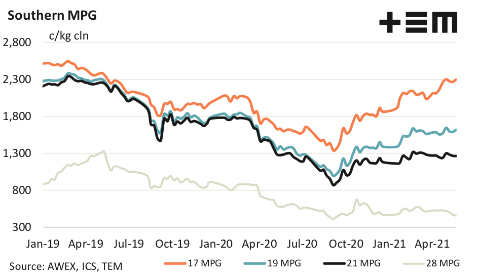 Reports of more business done late this week suggest that prices should be supported again next week at auction. Sales volumes for 19 micron are up 50% for 2021 so far compared to the same period in 2020 (calendar year). Compared to the same period two years ago, sales volumes are up 21% so the market is doing well to absorb the increased supply.