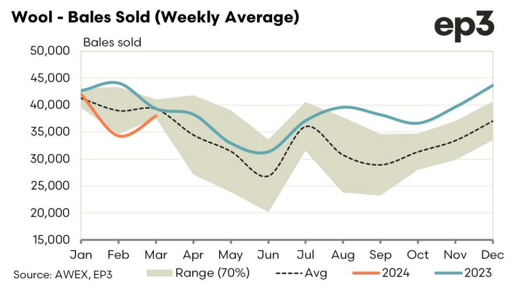 Another disappointing week on the spot auction. Not even the signature Royal Easter Show venue could stop the rot. Merino qualities lost between one and two percent for the week. Crossbreds were generally unchanged, and cardings continue to remain solid.