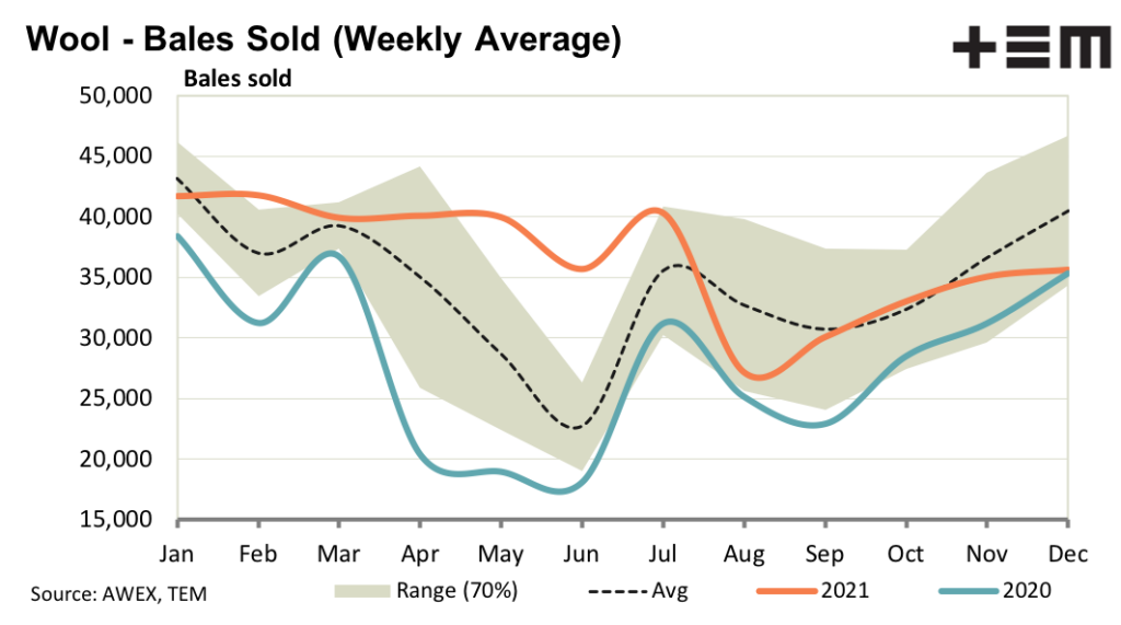 It was another week of solid prices generally in the greasy wool market, with the odd lot being neglected. Expectations are that these conditions will persist into next week, with some concern about the week after that (the last sale week before the three week Christmas recess) with regard to financing. Continued interest in finer merino wool, despite the relatively high price levels, was best demonstrated by the forward bids for 17-18 micron, out to mid-2022.