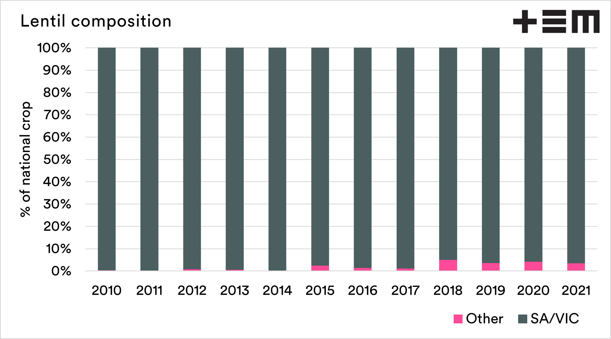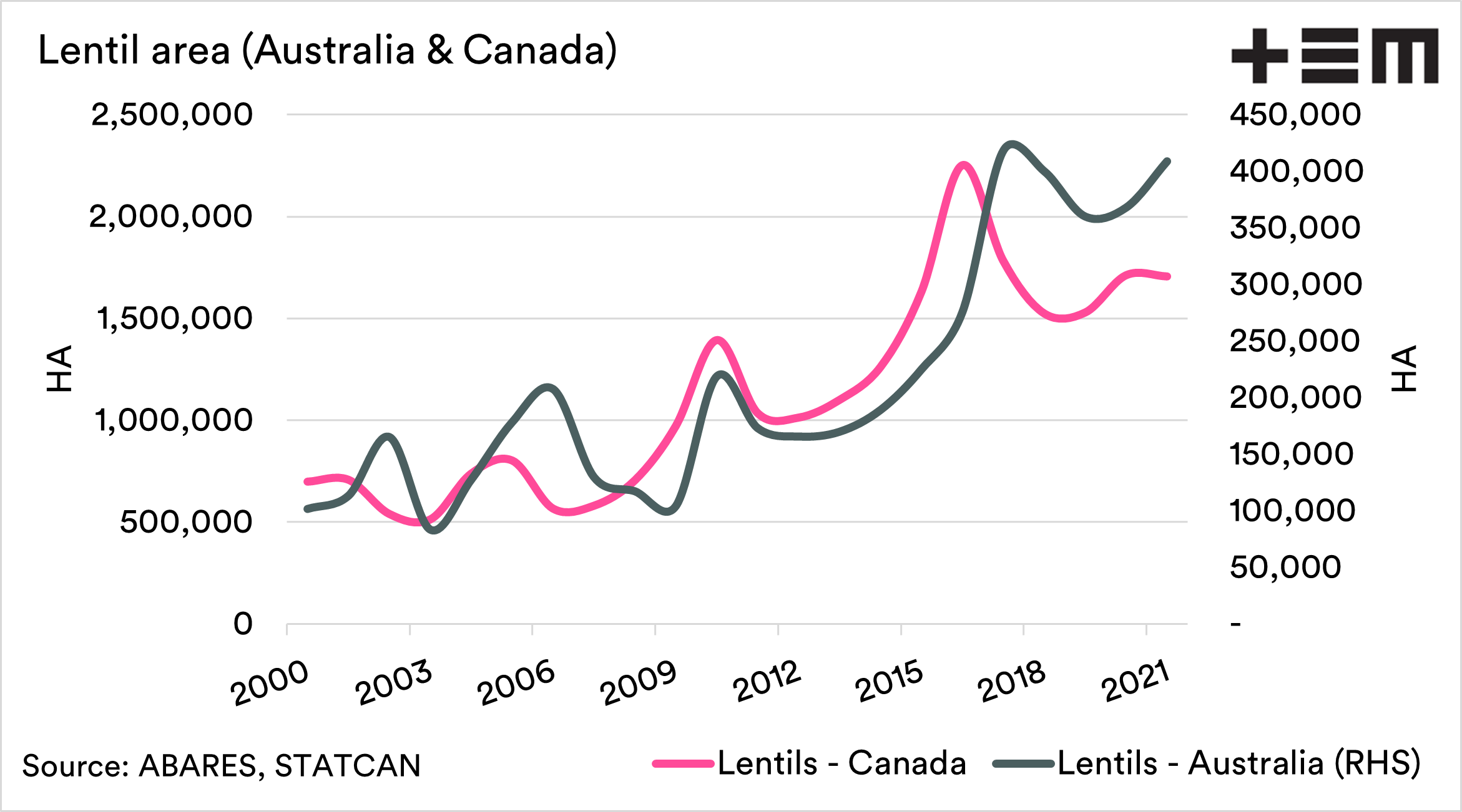 At the moment our main competitor in the lentil space (Canada) has reduced their lentil acreage for this year. It is interesting to note the close relationship between lentil acreage in Australia and our commonwealth cousins.