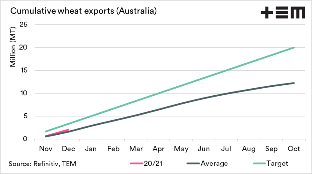 Australia, unlike many other countries, doesn’t make it easy to keep a close eye on export pace. This is an area where our statistics agencies could make improvements to benefit farmers. At EP3 we collect data on export pace through our partnerships.