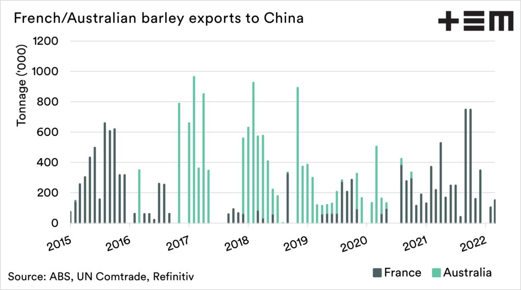 If I was a Chinese consumer, be that feed or malt users, I would be lobbying hard to get access to Australian supplies.
