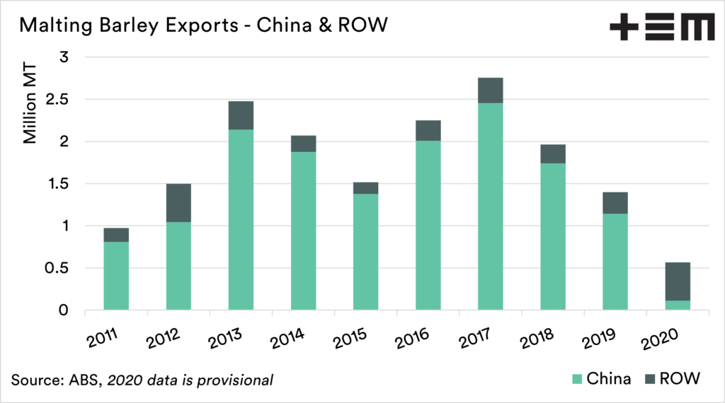 - Our malt barley exports have overwhelmingly gone to China; now they have stopped.