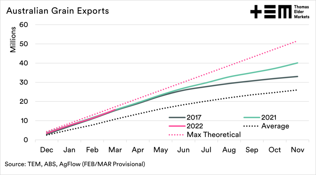 We can, however, run the system as hard as possible to ensure there is a realistic maximisation of the supply chain. If there is a year to get grain exported in as large of a volume as possible, it is 2022. Let’s hope that export volumes are increased in order to help increase the flow of overseas values into local growers’ pockets.