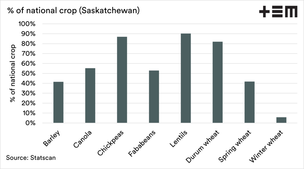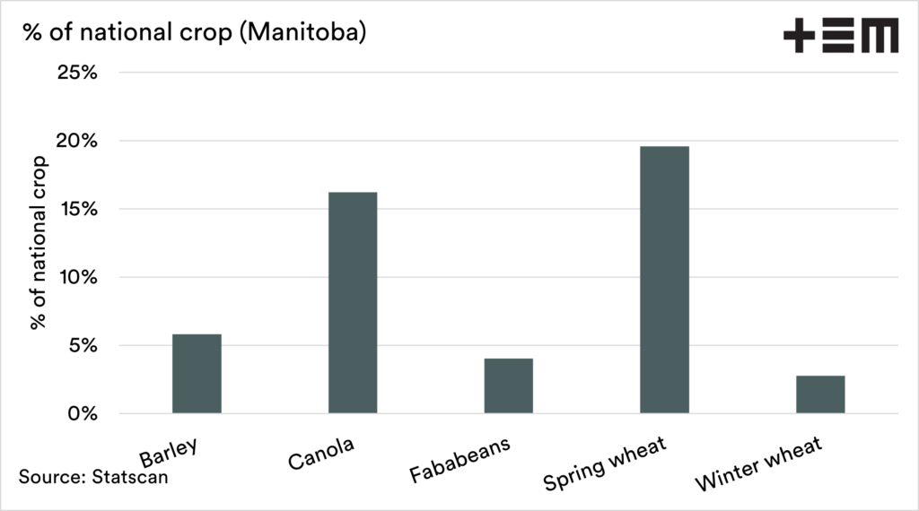 Manitoba has slightly less importance when it comes to the overall crop, however it has decent volumes of spring wheat and canola.