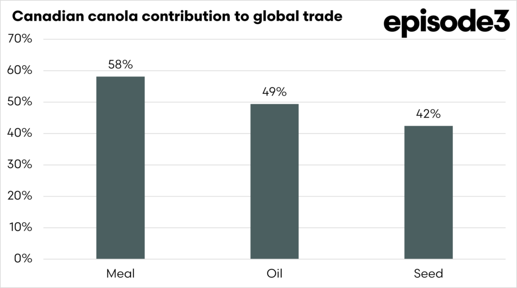 Canada is a huge contributor to the global trade in meal, oil and seed, as can be seen in the chart displaying the five-year average.