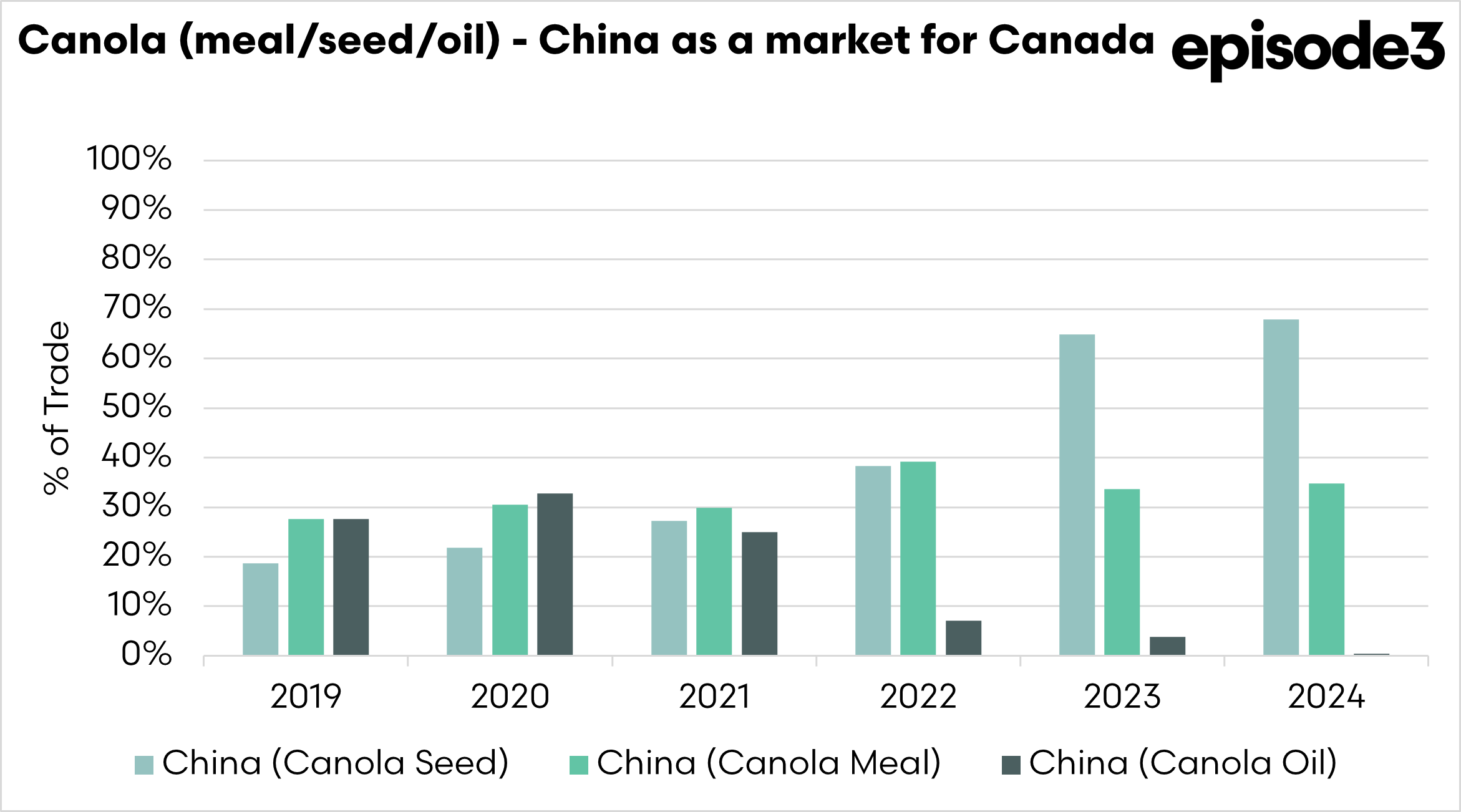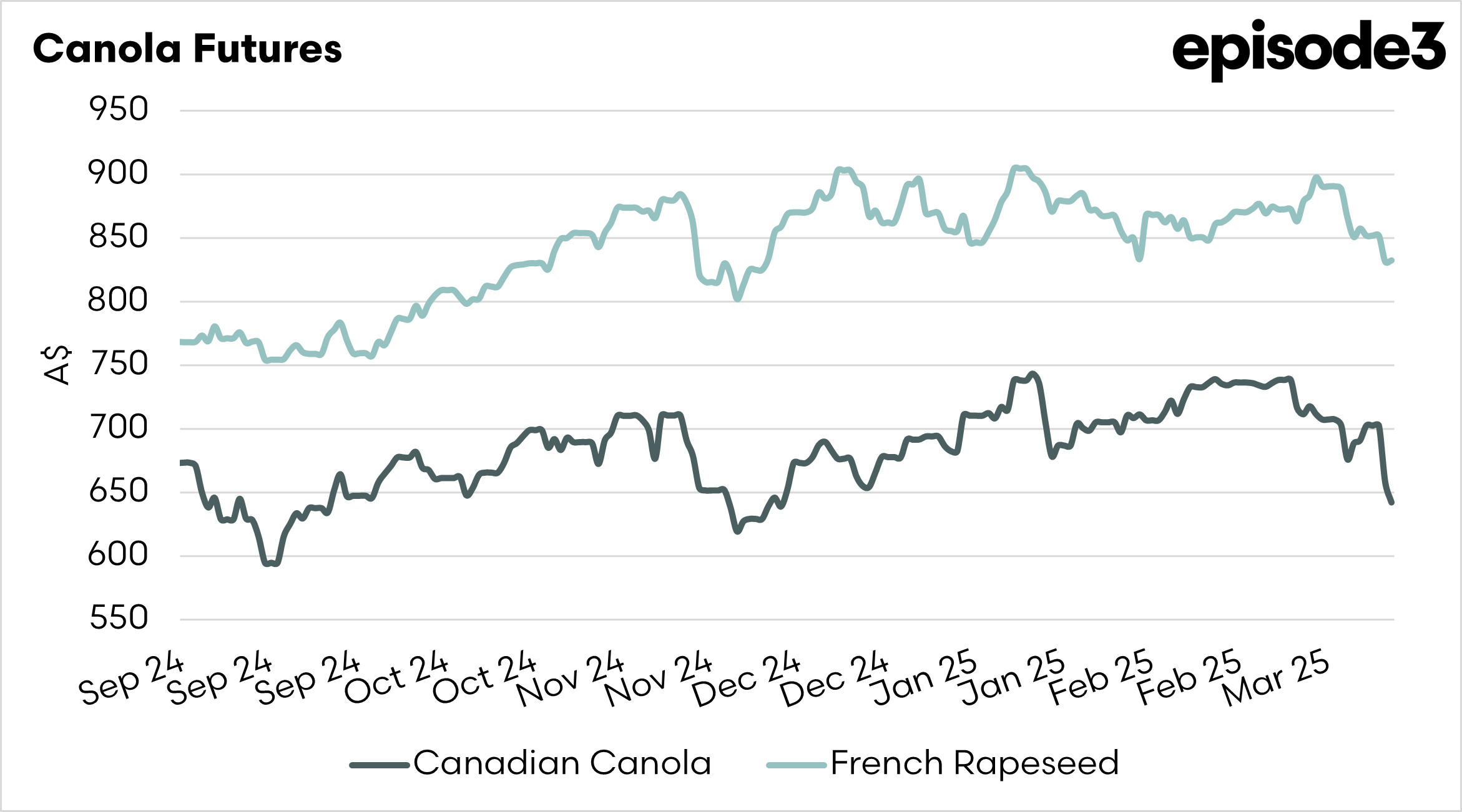 Tariffs will make these markets unattractive, which will mean that they will be looking to move canola to different markets, which may be directly competing with Australian trade.
