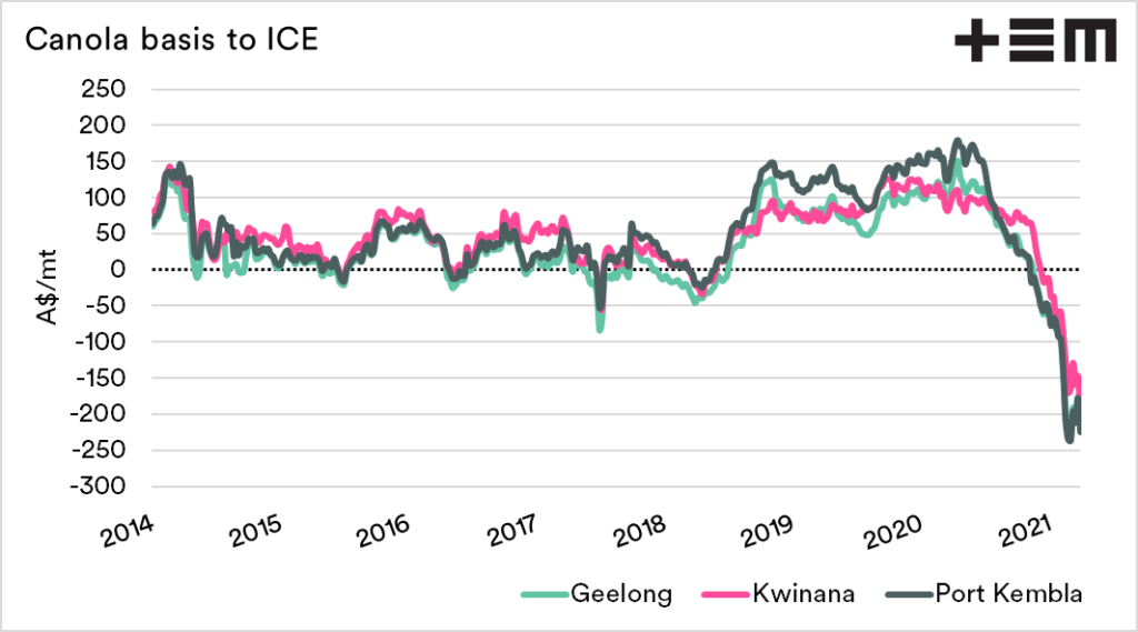 Historically we have competed with ICE canola, as Canada is a major producer and exporter. Whilst we have regularly exported large volumes into European crush plants.