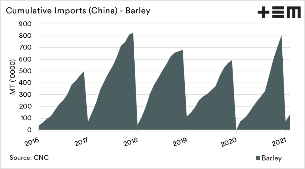 You might think, “why bother talking about China? They aren’t a customer?”. That is logical, but the fact is that even if China is not coming to Australia for their barley, a large import program into China is good for our producers.