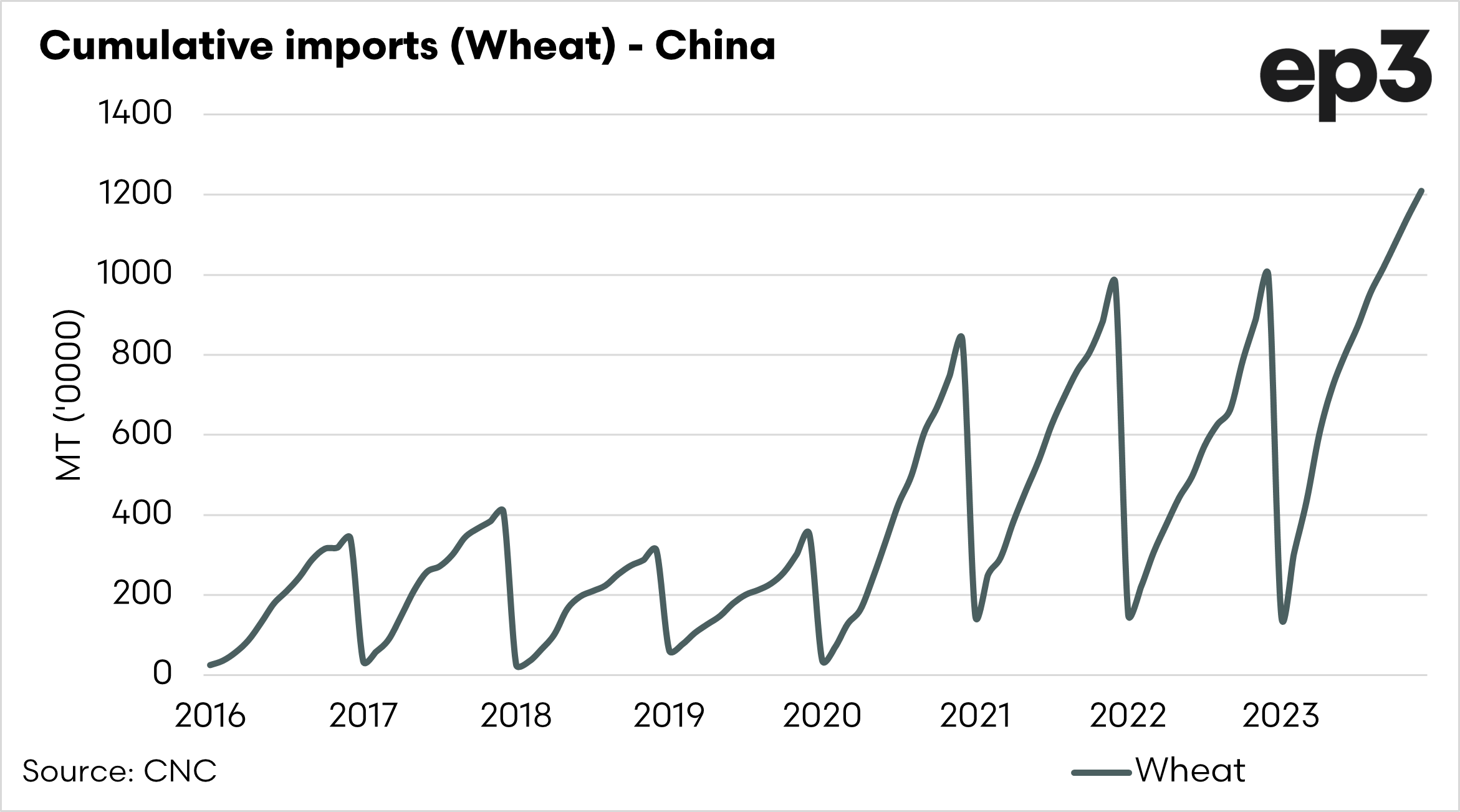 We have written a lot about the increase in the volume of grain going to China. Since 2020, China has been buying huge volumes of grain from all over the world. The increase in volume.