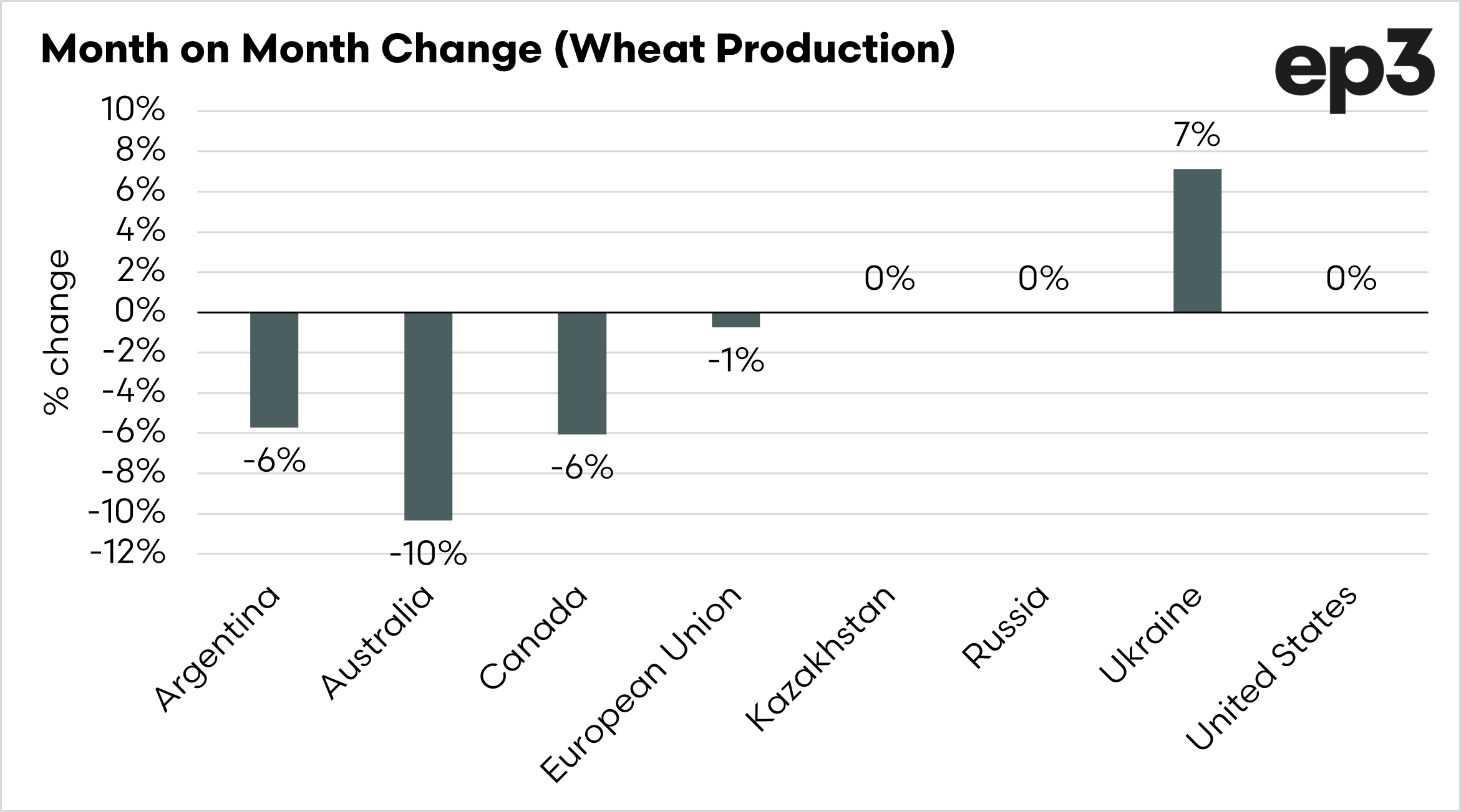 - The Australian wheat crop was reduced to 26mmt from 29mmt in August. This will be revised further down.