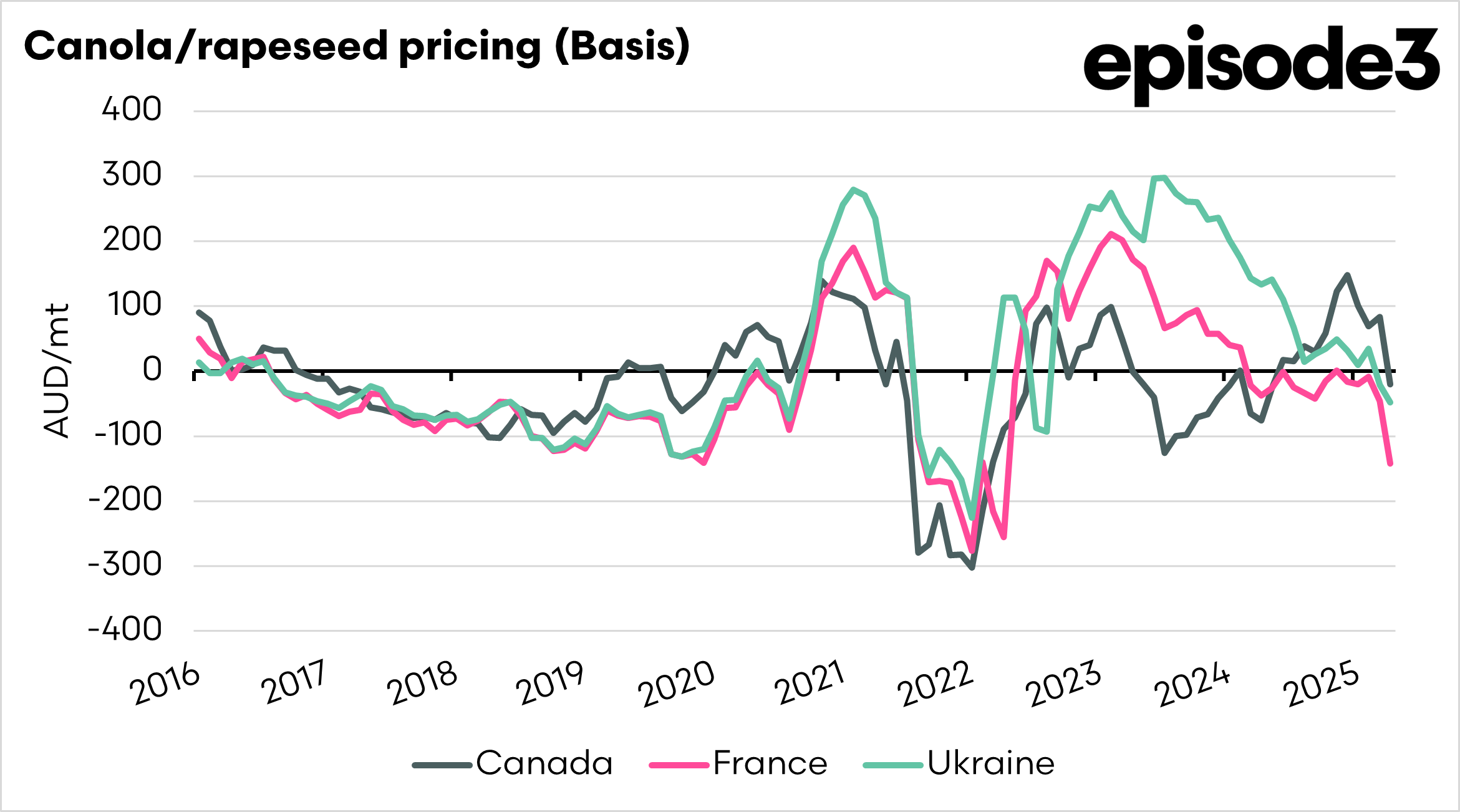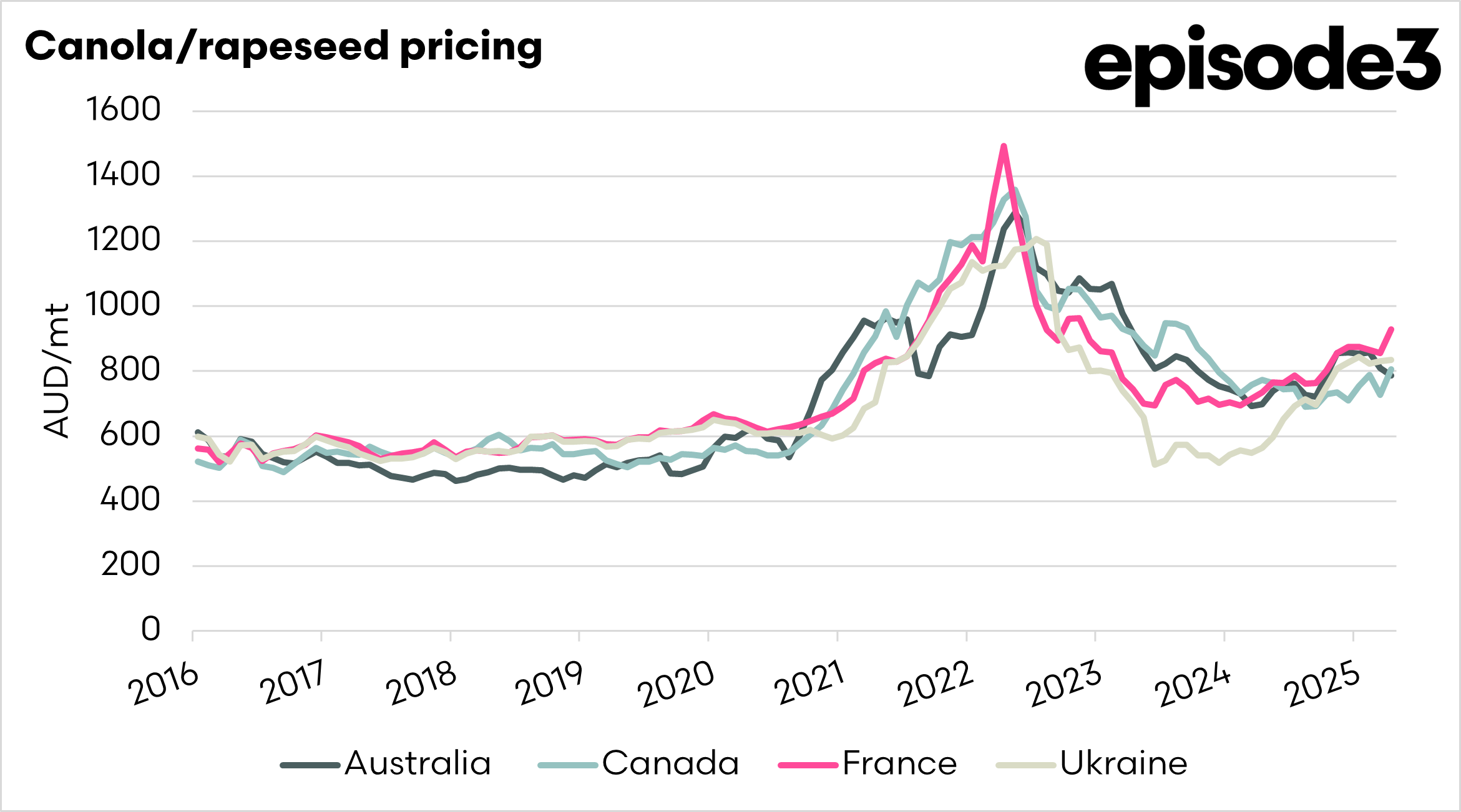 Canola has been a star performer in recent years, driving farming profit in the grain sector. But how do we compare against some of our largest competitors and our main destination? In this analysis, we will look at French, Canadian, Australian, and Ukrainian pricing levels.