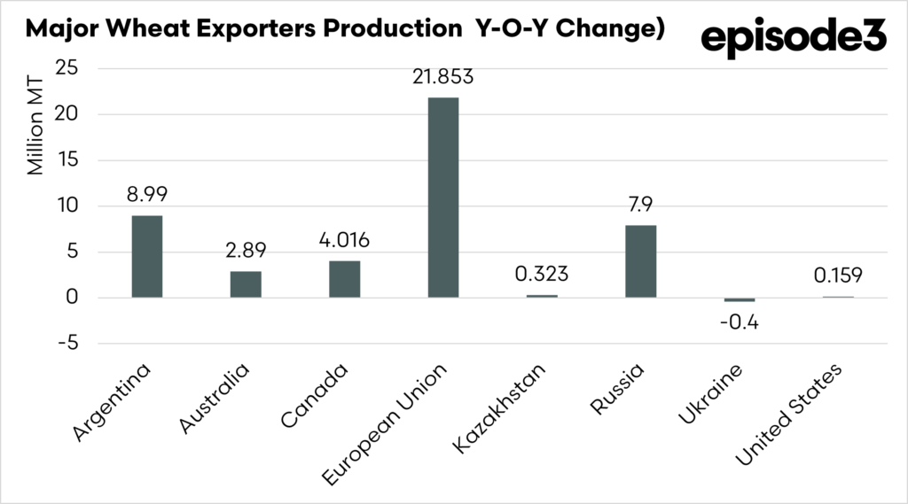 The only major exporter not to see a production increase this season was Ukraine, whose decline was minor.