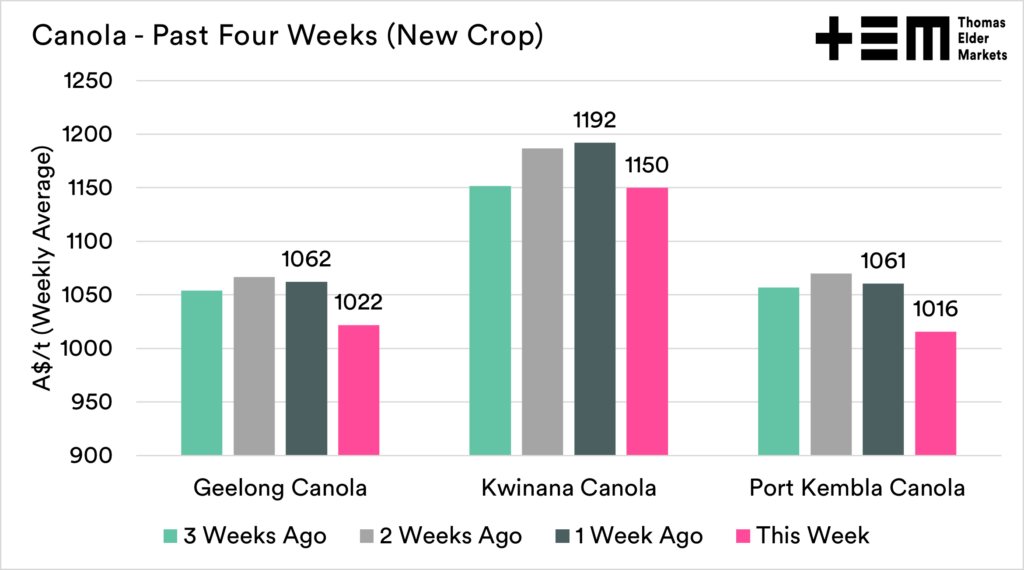 At a local level, canola prices have come under pressure across the country; however, they remain at very strong levels, close to double the long-term average price.