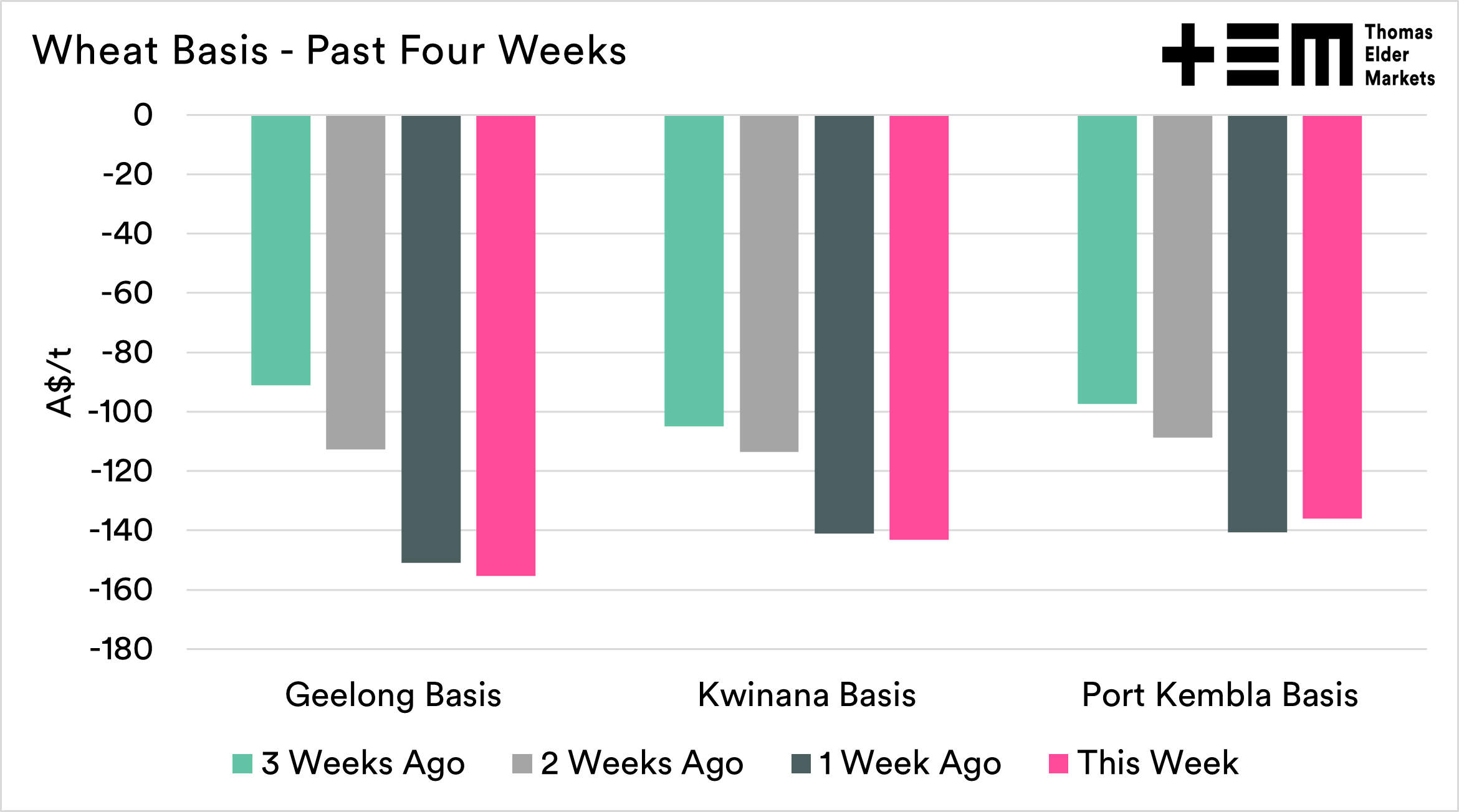 Wheat basis in Australia for new crop remains at heavily discounted levels around the country.