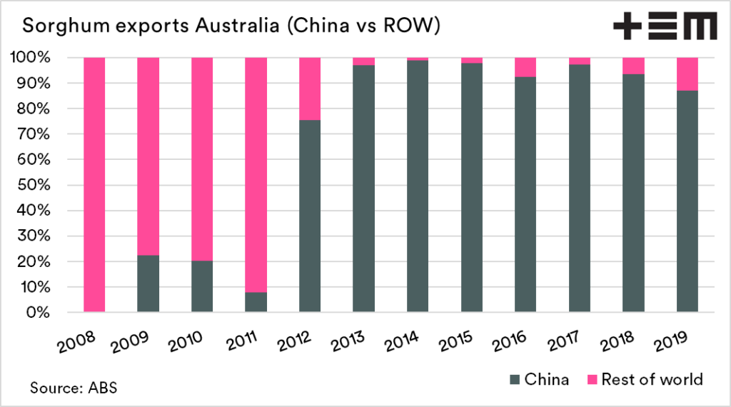 China has been a significant customer for Australian sorghum during the past decade, and since 2012 have taken the lion share of sorghum exports.