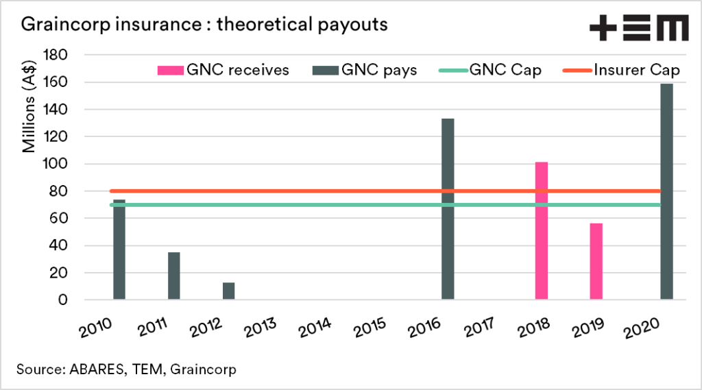 - Since 2010, the insurance policy would only have paid out to GrainCorp during 2018 & 2019.